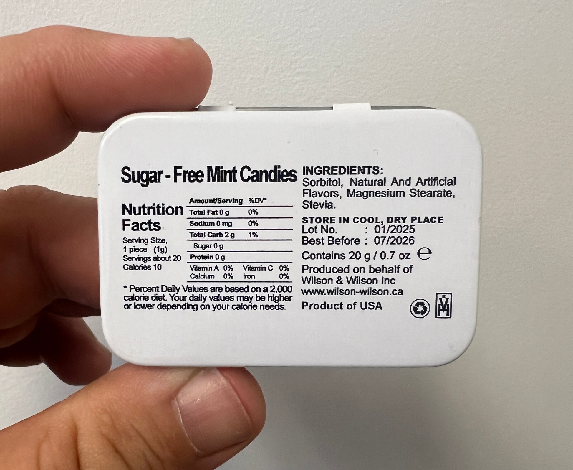Mints are Kosher and Sugar-free.
